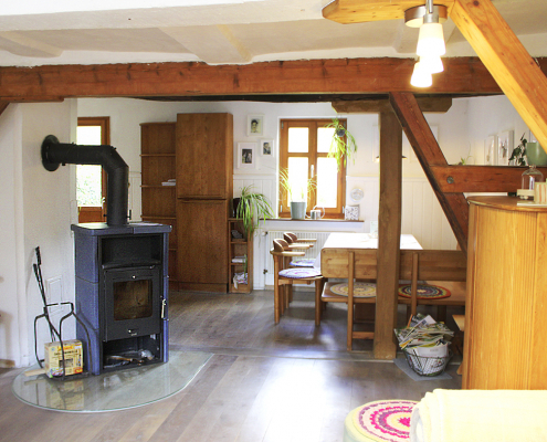 Angrenzend an die Küche befindet sich der Zugang zum kleinen Garten, den Sie zur Erholung oder zum Grillen und Verweilen nutzen können.