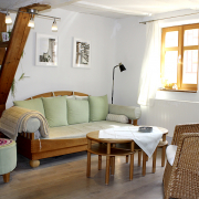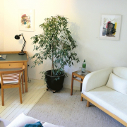 Diese schöne Wohnung verfügt über drei Schlafzimmer, die sich im Obergeschoss befinden. Auf dem Weg dorthin lädt eine Leseecke zum Schmökern ein. Badezimmer und Wohn-Essbereich gehören natürlich auch zur Wohnung.